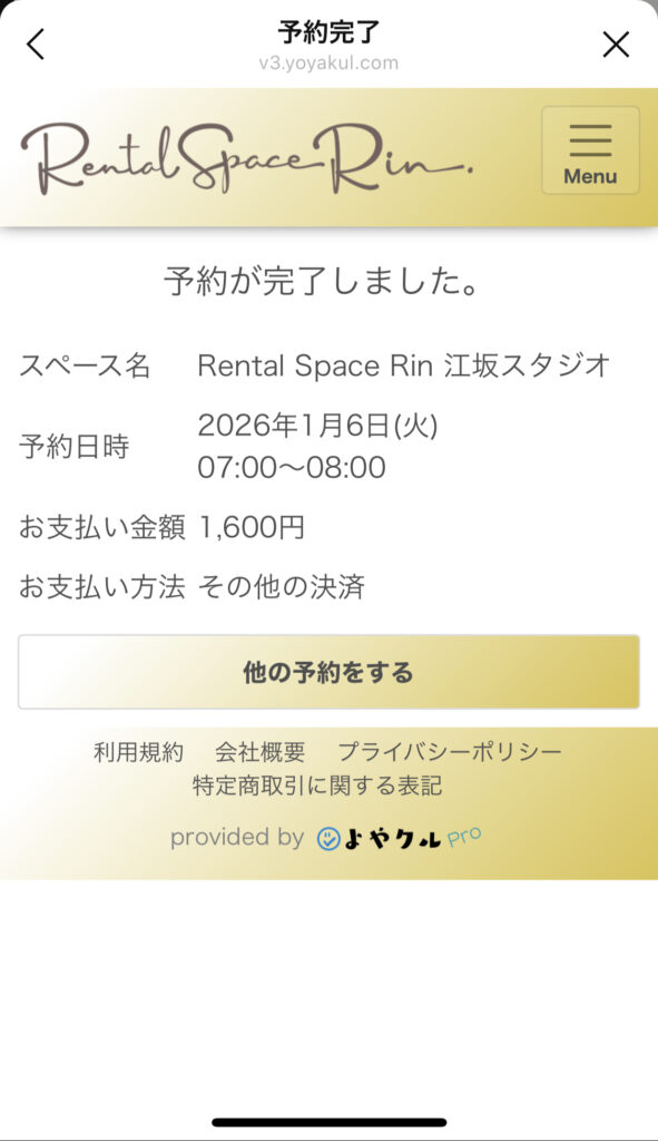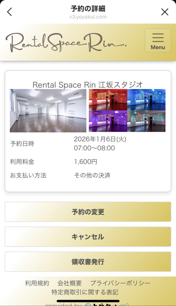 ④予約が完了すると、予約内容・ご利用案内・アクセス・鍵の開け方などの詳細が書かれてるメッセージが届くので、それを確認します。