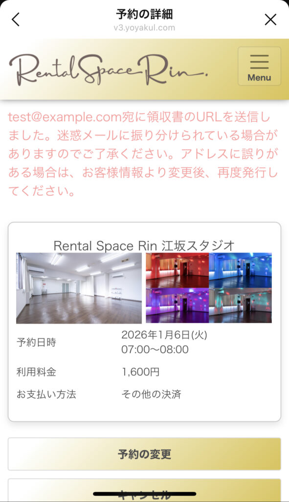 ④領収書が発行されるとご登録のメールアドレスにメールが届きます。