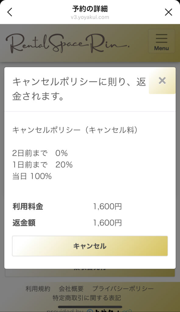キャンセルポリシーに基づき、予約日の7日前からキャンセル料・変更料が発生しますので、予めご了承ください。